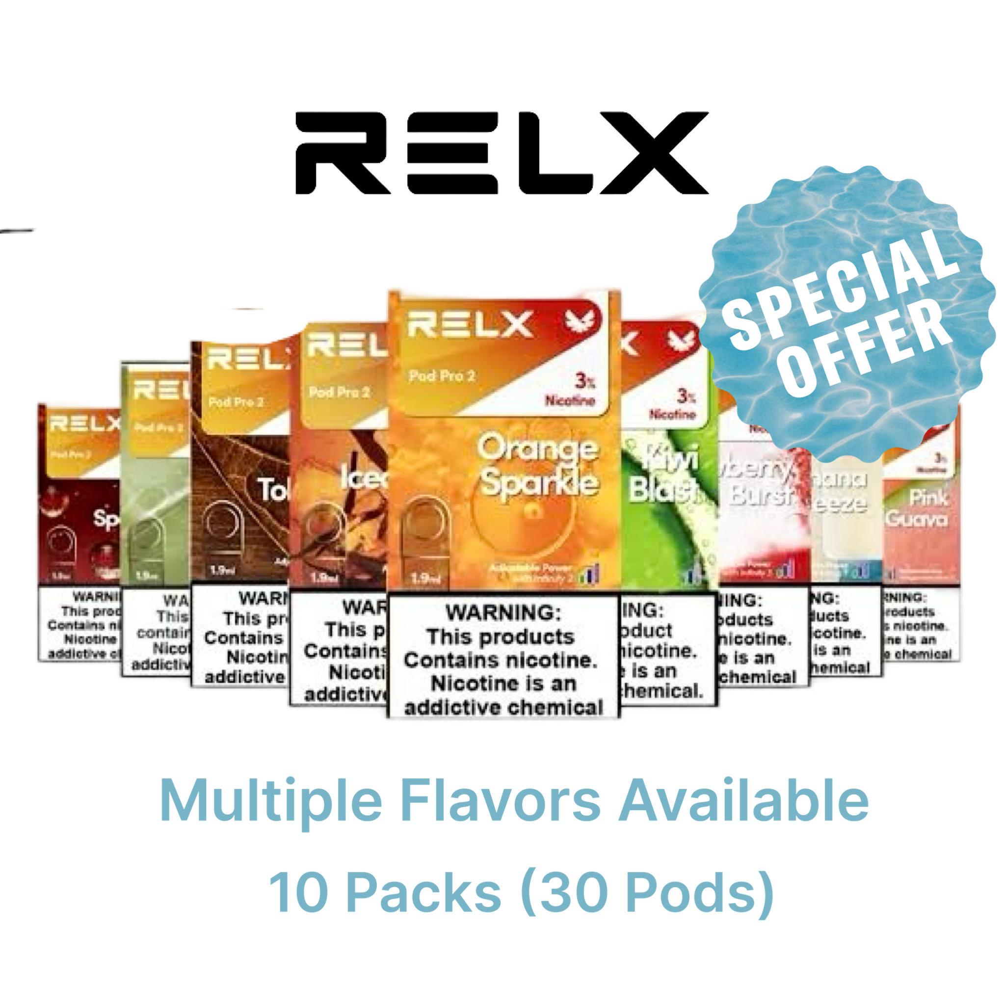 | RELX Infinity 2 Pro Pods Flash Sale 30 Pack | $280.00 | Flash sale 30-pack with promotional price |