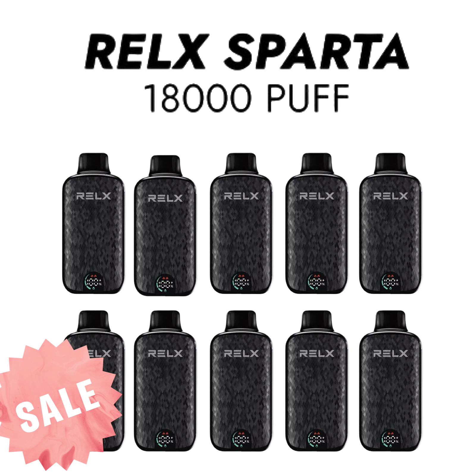 | RELX Sparta 18000 Bundle 10 Pack | $400.00 | Bundle of 10 disposable vapes, long-lasting supply |